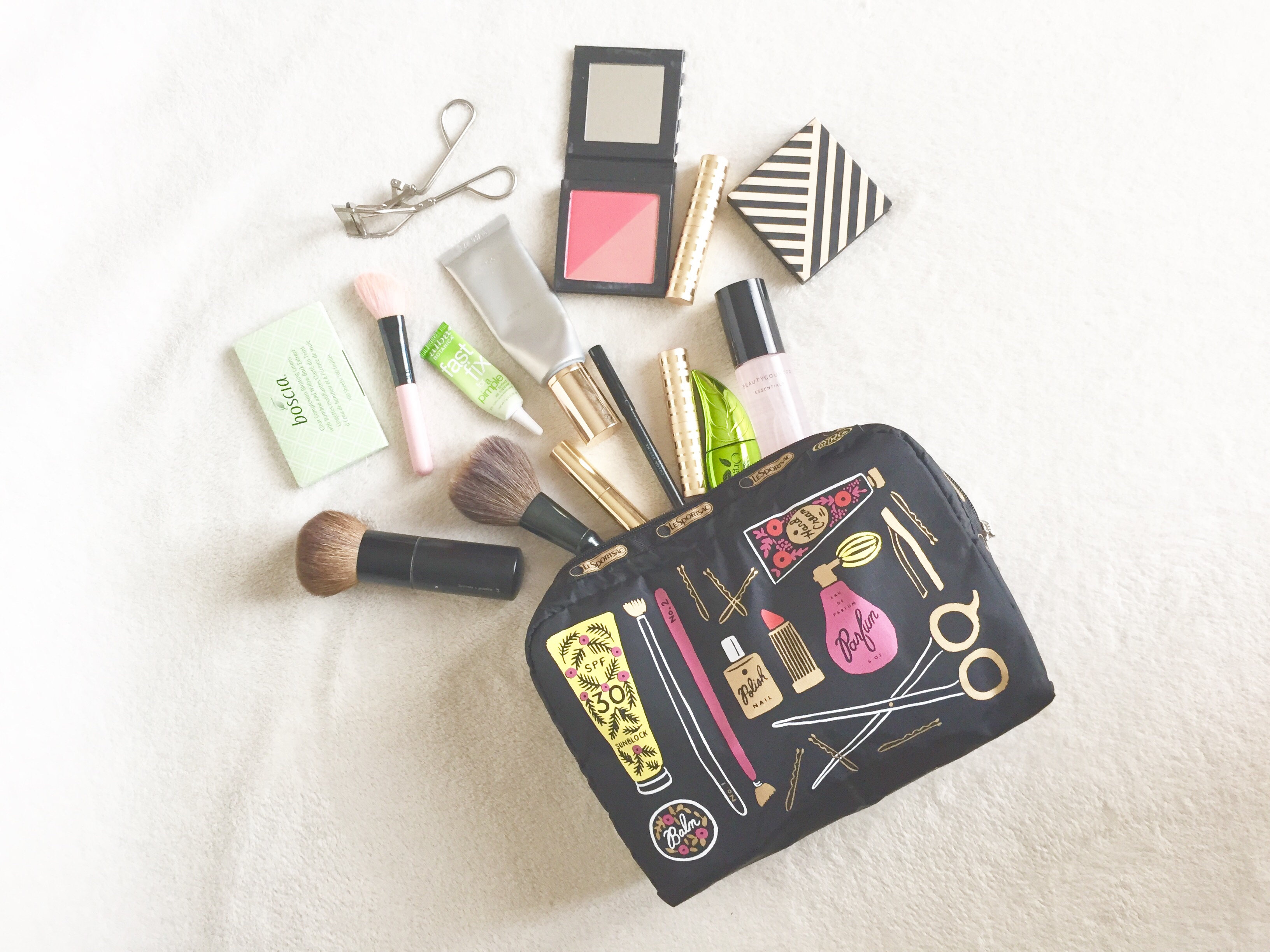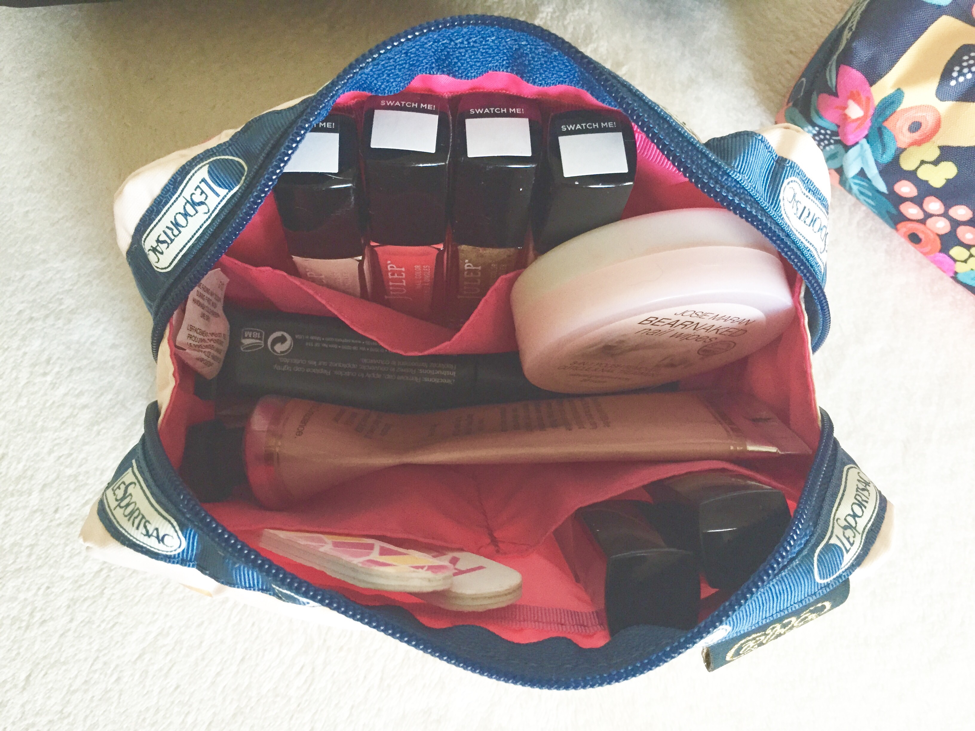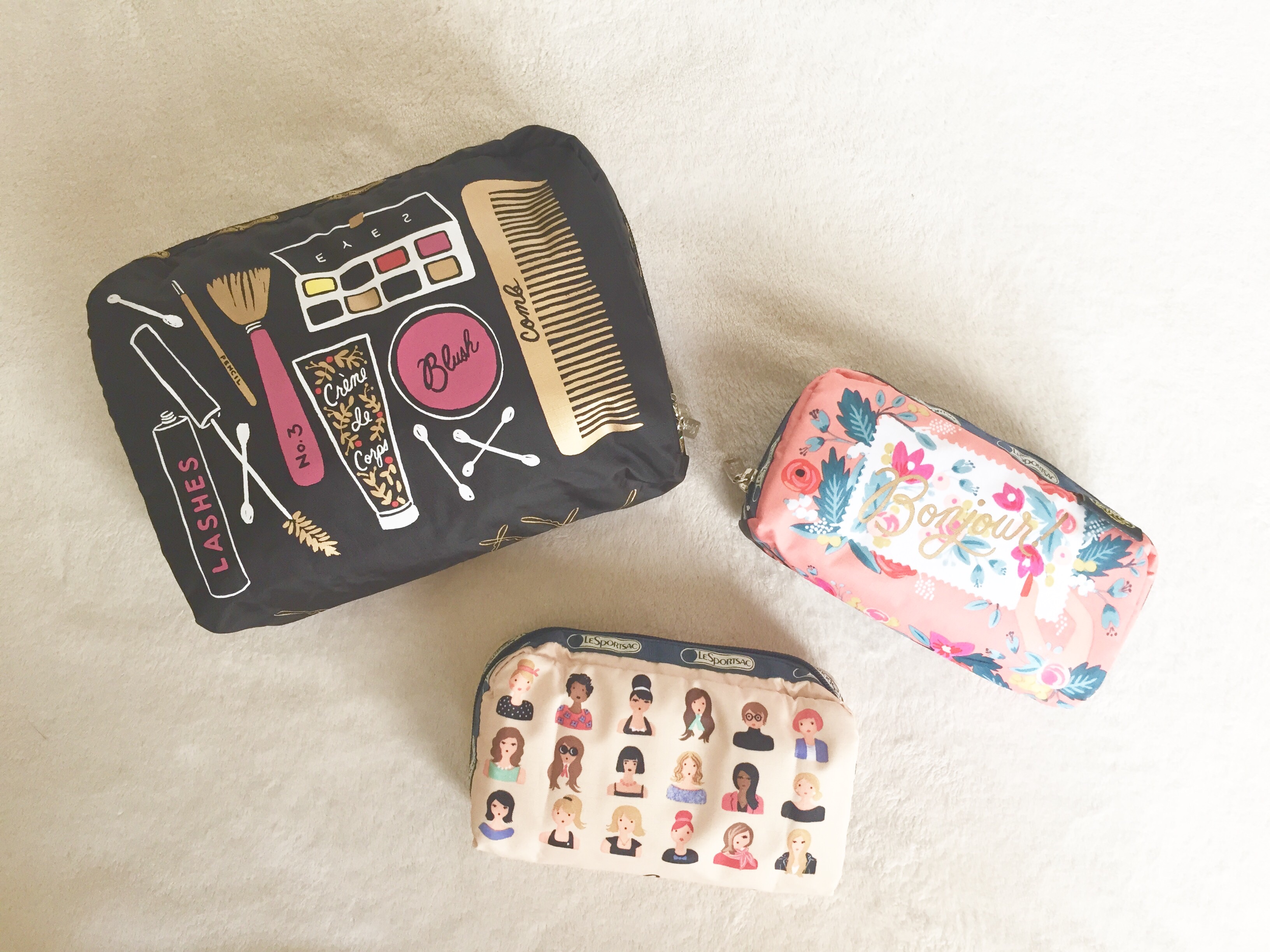 Just like my obsession with cosmetics, I’ve been captured by cute cosmetic bags for as long as I can remember. Nothing feels more perfect than have a well-edited makeup collection all wrapped up in a cute pouch. Considering this, I thought it was a little crazy when I realized I have never actually purchased a pouch for the purposes of holding my cosmetic essentials. I have had about a million (not even an exagerration) free with purchase bags over the years that I have used. And I did purchase a Vera Bradley travel pouch for toiletries awhile back. But nothing specifically for makeup. When I saw the collaboration between LeSportSac (known for it’s graphic, yet utilitarian, luggage, purses, and accessories) and Rifle Paper Co. (the beautiful stationary and gift brand that just so happens to be headquarted in my birthplace), I knew it was time to invest in some cute cosmetic pouches.